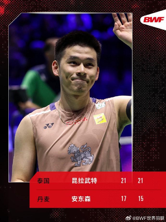 8月31日,2025年羽毛球世锦赛半决赛:昆拉武特2-0(21-17、21-15)战胜安东森,连续三届世锦赛跻身男单决赛,将与石宇奇争冠。交手纪录上,石宇奇5-3领先。