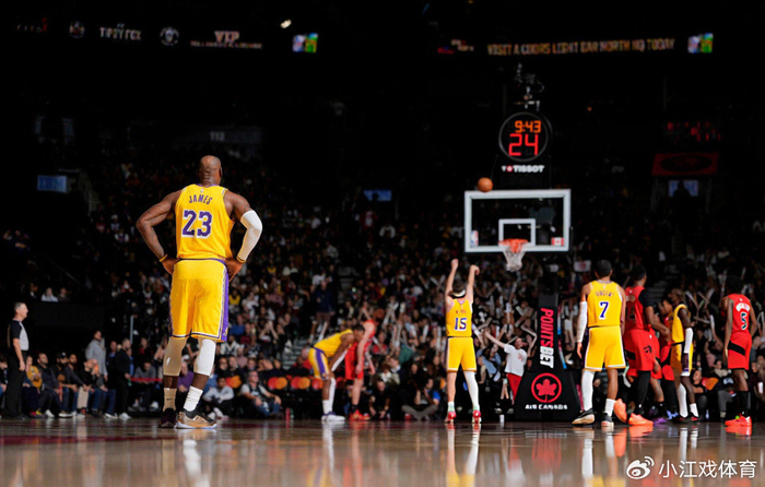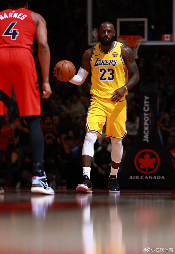 首节比赛中,詹姆斯5投全丢,不管是外线远射还是强攻篮下,詹姆斯都毫无手感。次节比赛开始后,詹姆斯很快再次投丢一球,随后终于上篮得手。上半场结束之前,詹姆斯中投得手,单节拿到4分,湖人队上半场领先猛龙队9分。