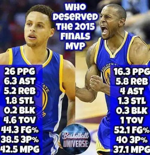 还有种可能,当时NBA或许想整点“意外”话题。伊戈达拉拿FMVP,多让人意想不到,话题一下子就起来。可苦了库里,明明是球队老大,夺冠大功臣,却和FMVP失之交臂。好在后来库里在2.22年也拿到属于自己的FMVP,但2015年这争议,估计会一直被球迷和杨毅这样的名嘴拿出来说;毕竟库里当年表现,确实该得个FMVP。